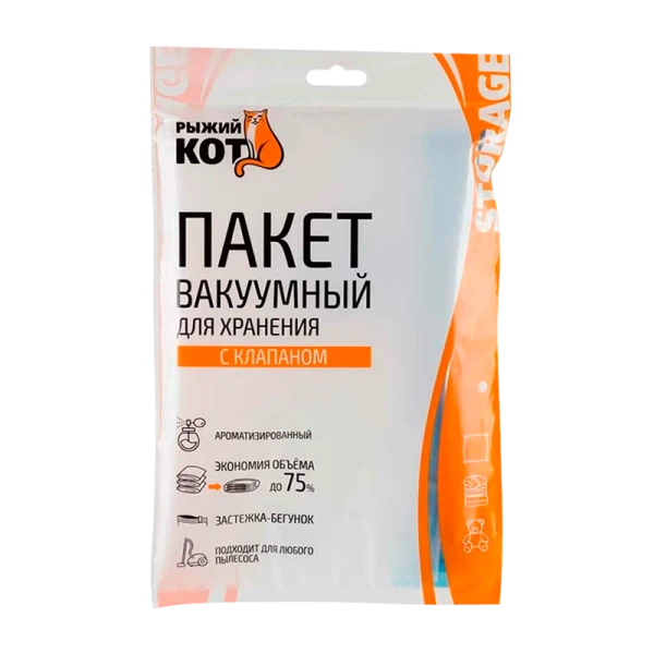 Пакет вакуумный для хранения Рыжий кот VB7 поможет сэкономить место и защитить ваши вещи от влаги, пыли, насекомых и посторонних запахов. Используется для всех видов одежды, постельного белья и подушек. Применяется для удобного хранения одежды.