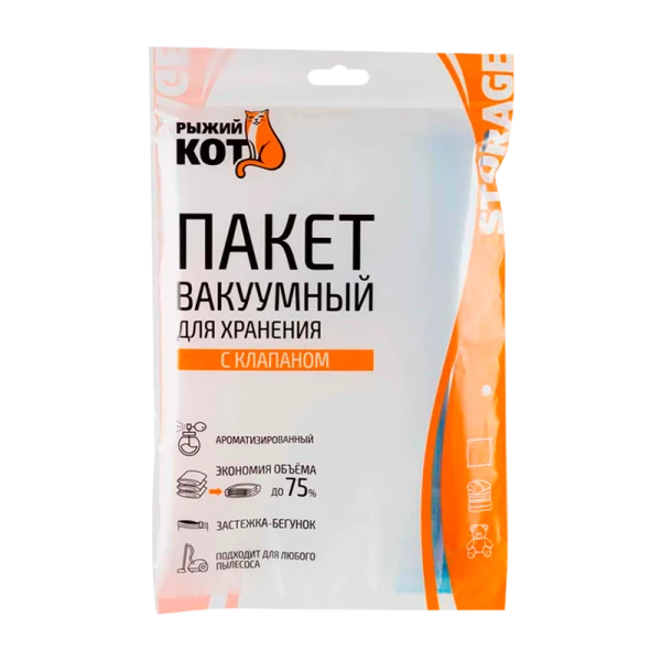 Пакет вакуумный для хранения Рыжий кот VB7 поможет сэкономить место и защитить ваши вещи от влаги, пыли, насекомых и посторонних запахов. Используется для всех видов одежды, постельного белья и подушек. Применяется для удобного хранения одежды.