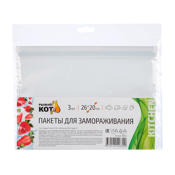 Пакет для заморозки Рыжий кот 26см x 20см, 3 шт в наборе.