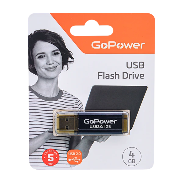 Флеш-накопитель GoPower HIT 4GB USB2.0 металл черный