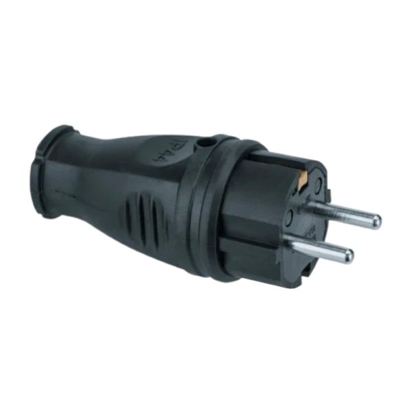 Каучуковая вилка Volsten S1-PZ Black — надежное решение для подключения мощных бытовых устройств с током до 16А.