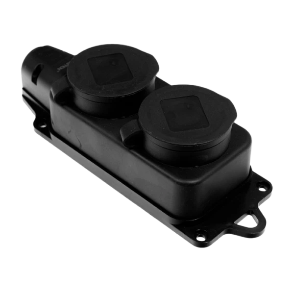 Каучуковая колодка штепсельная со шторкой VOLSTEN S1-M2Z Black подходит для подключения мощной бытовой и строительной техники.