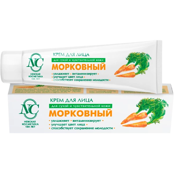 Крем для лица Невская Косметика Морковный предназначен для смягчения, увлажнения и питания сухой и чувствительной кожи лица. Натуральное оливковое масло обладает отличными смягчающими и питательными свойствами, прекрасно восстанавливает гидролипидный барьер кожи. Экстракт моркови увлажняет, смягчает и активно витаминизирует кожу. Морковь богата каротиноидами (в том числе каротином - провитамином А), которые усиливают защитную функцию кожи. Каротин борется со свободными радикалами, благодаря чему замедляет процессы старения. Экстракт моркови, помимо каротина, содержит витамины группы В, РР, D. Обладает регенерирующим действием, устраняет шелушение, придает коже гладкость и нежность. Витамин Е, природный антиоксидант, «витамин красоты», обладает защитным и противовоспалительным свойством.