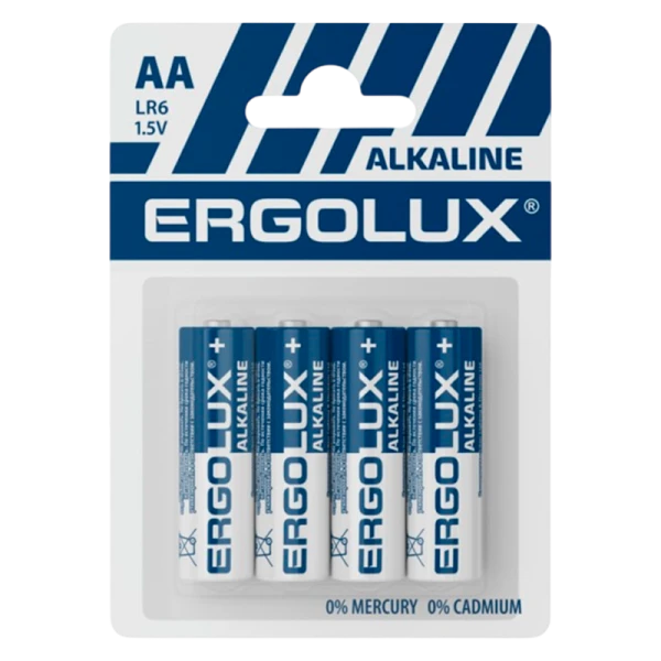 Щелочные батарейки Ergolux LR6 AA BL4 обеспечивают стабильное напряжение и длительный срок службы. Идеально подходят для повседневного использования.