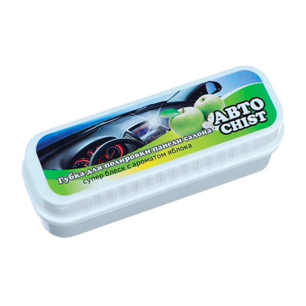 Губка для автомобиля CHIST "Яблоко" - незаменимый, повседневный помощник для вашего автомобиля Автомобильная губка для полировки панели с двойной силиконовой пропиткой отлично удаляет пыль и полирует поверхности, не оставляя разводов. Благодаря специальному составу, ваш салон на долго будет защищен от пыли и других загрязнений, а приятный аромат на долго наполнит салон вашего авто. Прекрасно очищает и обновляет внешний вид приборной панели, придает глянцевый эффект. Эффективное средство для очистки и полировки приборной панели и пластиковых деталей автомобиля.