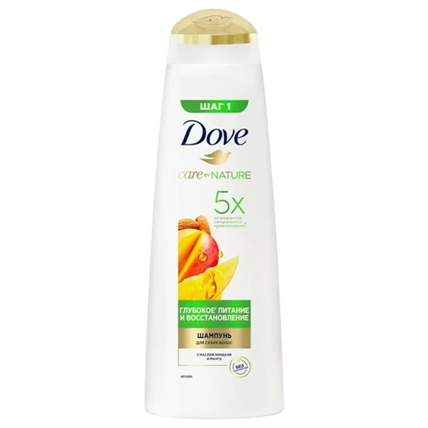 Ухаживающая питательная формула шампуня Dove Питание и Восстановление с манго содержит 5 ингредиентов натурального происхождения: масло миндаля, экстракт манго, глицерин, масло кокоса и авокадо. Формула продукта, насыщенная маслами и активными ингредиентами, комплексно воздействует на волосы и кожу головы. Масло миндаля защищает волосы, препятствует их обезвоживанию, придает им блеск; экстракт манго способствует их укреплению и повышает защитные свойства; глицерин увлажняет и питает; масло кокоса, насыщенное жирными кислотами, известно своим смягчающим и увлажняющим действием, помогает восстановить структуру волоса, придавая им блеск; масло авокадо смягчает кожу головы. 100% натуральные ингредиенты*, без силиконов, парабенов, красителей. Результат: бережное эффективное очищение и натуральный уход! Шампунь питает и восстанавливает даже очень сухие волосы без утяжеления. Невероятный сочный аромат манго подарит вам особое удовольствие. Мягкие и послушные волосы каждый день!