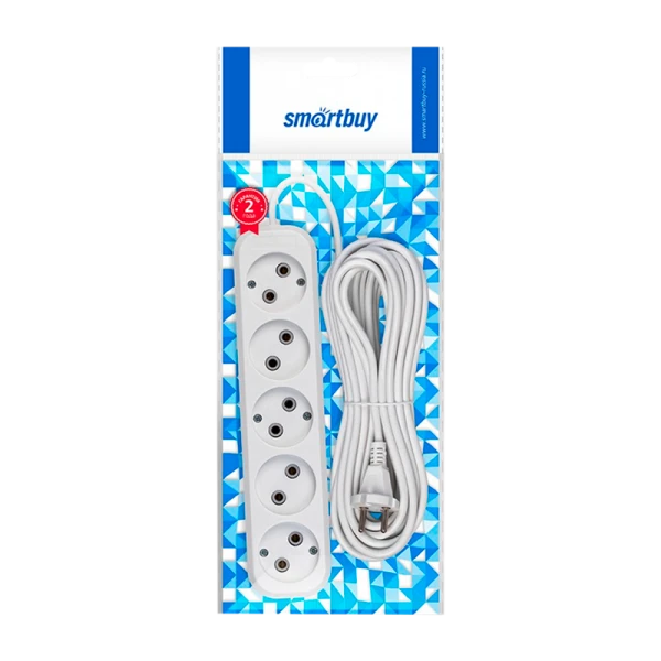 Удлинитель Smartbuy 5р.Б/З 10A 10.0м ПВС 2x1мм² белый