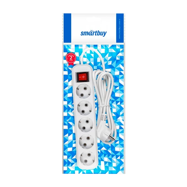 Удлинитель Smartbuy оснащен пятью розетками для подключения различных устройств. Кабель длиной 2 метра обеспечивает большую мобильность и удобство использования. Благодаря номинальному току в 16А, этот удлинитель подходит для большинства бытовых нужд. Наличие выключателя позволяет легко управлять подключенными устройствами, а заземление обеспечивает безопасность эксплуатации.