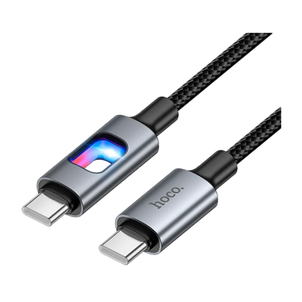 Кабель HOCO U144 Type-C (m)-Type-C (m) 1.2м 3.0A 60W нейлон подсветка, черный цвет.