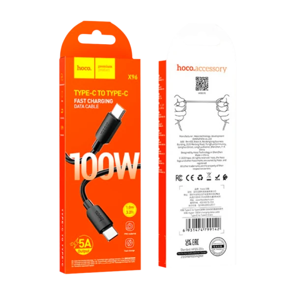 Кабель HOCO X96 Type-C (m)-Type-C (m) 1м 3.0A 100W ПВХ черный.