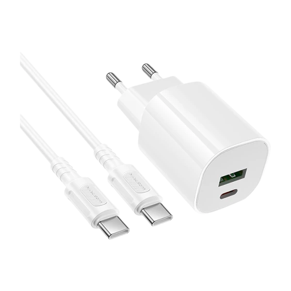 Сетевое З/У Borofone BA104A 1USB+1Type-C 20W QC3.0 с кабелем Type-C/Type-C белый (1/20/120)