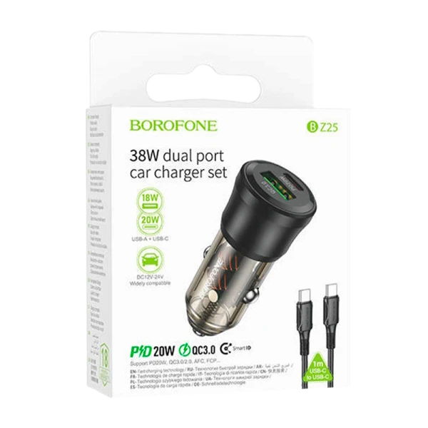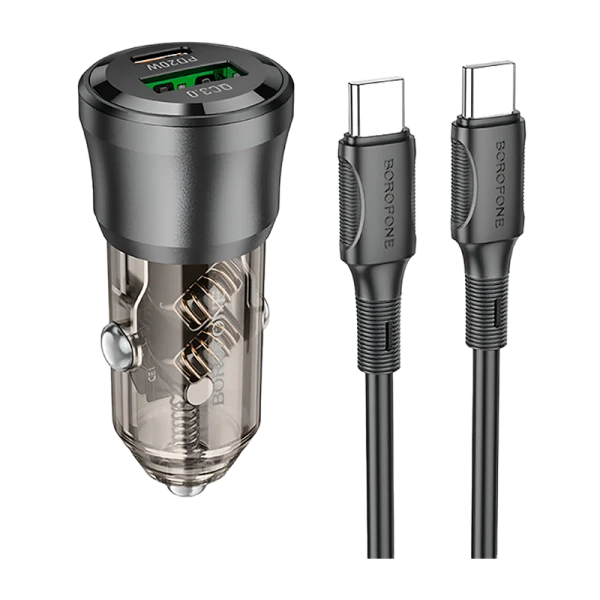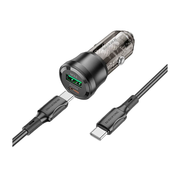 Автомобильное З/У Borofone BZ25 1USB+1Type-C 38W PD,QC с кабелем Type-C/Type-C черный (1/98/392)