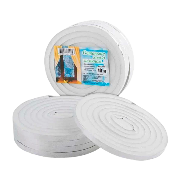 Утеплитель для заклеивания щелей в оконных рамах. Изделие имеет уникальные свойства тепло- и звукоизоляции. Изготовлена из поролона. Применяется на очищенной и обезжиренной поверхности.