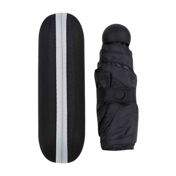 Зонт Рыжий кот мини складной механический с чехлом-капсулой черный (1/20/60)