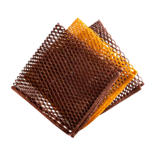 Узелковая сетка Рыжий кот 30х30см. Идеально подходит для мытья посуды, удаления жира, ухода за сантехникой. Заменяет губку и металлическую мочалку, не впитывает запахи, быстро сохнет, не царапает поверхность. Для кухни, ванной, туалетной комнаты.