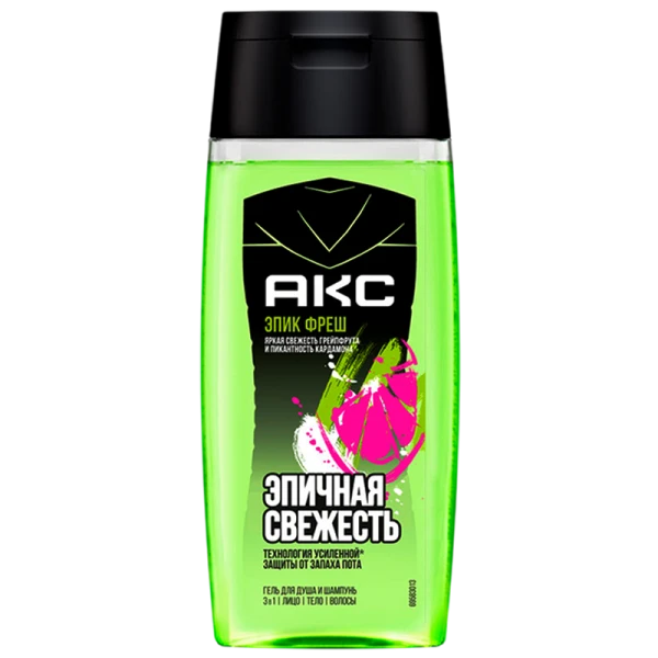 Мужской гель для душа АКС Эпичная Свежесть – это средство, которое сочетает в себе гелевые формулы для душа, шампуня и умывания. Разработанное для мужчин, которые ценят эффективность и простоту, Axe 3в1 Epic Fresh станет незаменимым спутником в любом путешествии или занятии спортом. Компактный объем 100 мл позволяет без труда брать его с собой, где бы вы ни находились. В состав входят пребиотики растительного происхождения и увлажняющие ингредиенты.