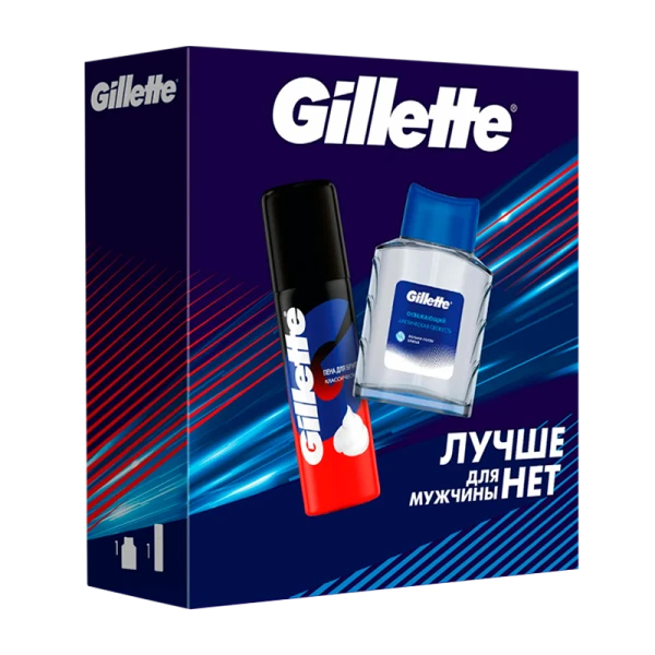 Подарочный уходовый набор Gillette. В набор входят классическая пена для бритья Gillette, 50мл и освежающий лосьон после бритья, 50мл.