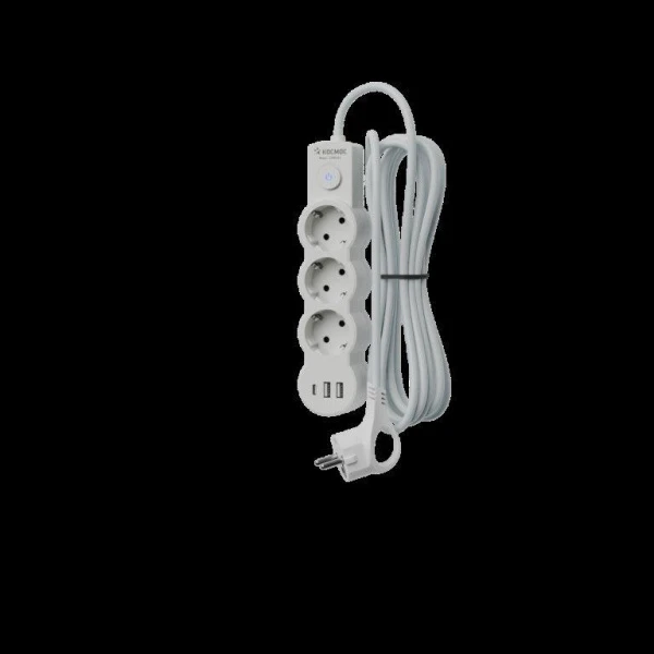 Удлинитель Космос 3р.С/З 10A 3.0м с выкл. ПВС 3x1мм² IP20 USB белый.