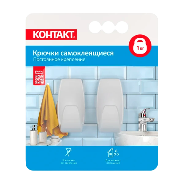 Крючки самоклеящиеся Контакт с постоянным креплением легко и надежно крепятся без использования инструментов и гвоздей.