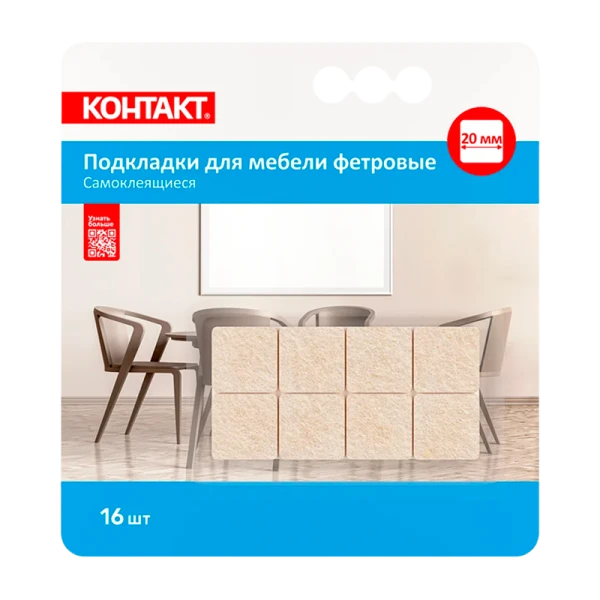 Обладают повышенной плотностью материала, увеличенная толщина фетра до 4 мм (минимум на 30% толще стандартных аналогов) для продолжительной эксплуатации. Подкладки для мебели Контакт идеально подходят для: дерева, металла, керамики, пластика и ЛДСП.