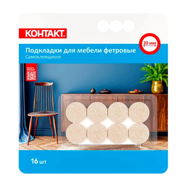 Обладают повышенной плотностью материала, увеличенная толщина фетра до 4 мм (минимум на 30% толще стандартных аналогов) для продолжительной эксплуатации. Подкладки для мебели Контакт идеально подходят для: дерева, металла, керамики, пластика и ЛДСП.