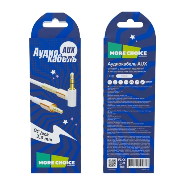 Кабель AUX MORE CHOICE UK11 Jack 3.5mm (m)-Jack 3.5mm (m) 1м белый (1/20/200)