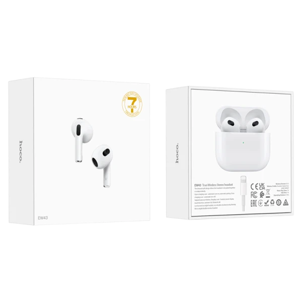 Наушники вставные HOCO EW43 bluetooth 5.3 с микр. белый (1/20/200)