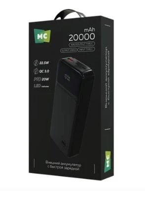 Внешний аккумулятор MORE CHOICE PB29-20 20000mAh 3.0A 22.5W 1USB/2Type-C PD,QC черный (1/10/50)