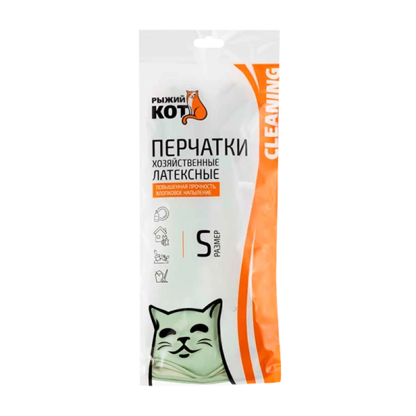 Перчатки латексные Рыжий кот размер S, хлопковое напыление.