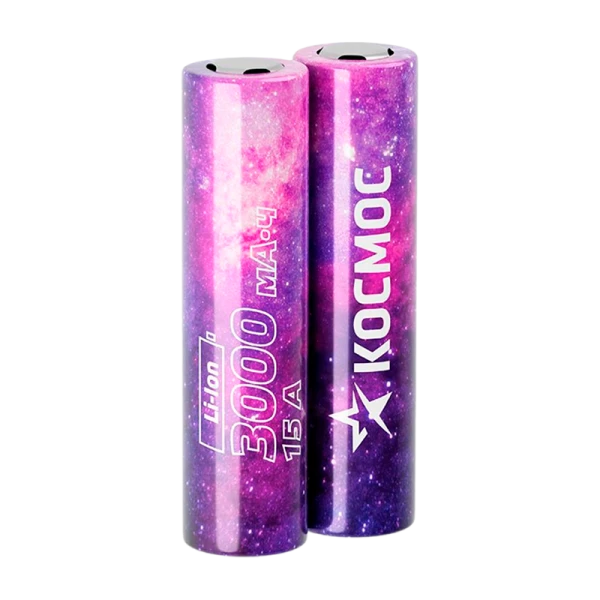 Аккумулятор Li-ion Космос 18650 Shrink 2 3000mAh б/з с плоским контактом. Высокотоковый литий-ионный аккумулятор 18650 Космос 3000 мАч без защитной платы. Подходит для использования в мощных потребителях таких как - электронные сигареты, шуруповерты, квадрокоптеры, электровелосипеды, игрушки, системы 2S,3S с большим потреблением тока и другие высокотоковые девайсы. Максимальный пиковый ток - 15А.