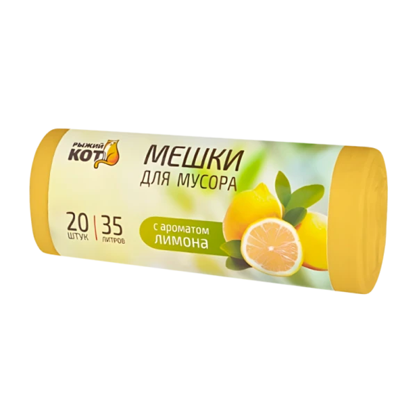Мешки для мусора Рыжий кот 35л 9мкм ПНД 20шт. с ароматом лимона желтый (1/50)