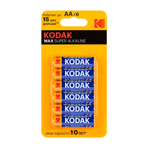 Батарейки щелочные Kodak LR6 AA серии MAX для большинства современных устройств с высоким и динамичным потреблением энергии - фонарей, игрушек, медицинских приборов, аудио- и видеотехники.