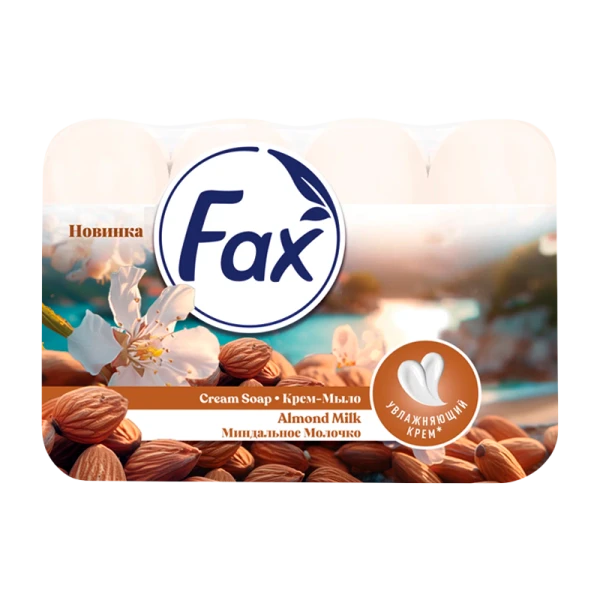 Мыло FAX миндальное молочко-крем бережно очищает и увлажняет кожу благодаря формуле с добавлением глицерина. Крем-мыло Fax подходит для всех типов кожи и может использоваться для душа.