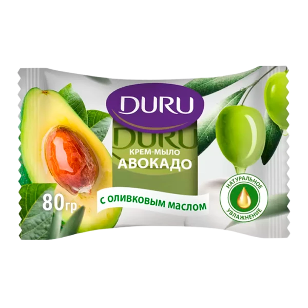 Крем-мыло Duru с авокадо и оливковым маслом – это приятный свежий аромат в сочетании с нежностью крема. Оливковое масло глубоко увлажняет и смягчает кожу. Мыло Duru гипоаллергенно и подходит для ежедневного применения для рук и тела. Вес мыла - 80 грамм.