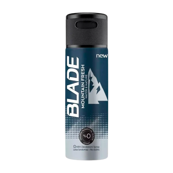Дезодорант-спрей мужской Blade Mountain Fresh с ароматом бергамота, герани, гелиотропа и лаванды – дезодорант с мягким, но характерным запахом, сохраняющий действие на протяжении 48 часов. Не содержит в составе порошок, из-за чего не оставляет следов на одежде.