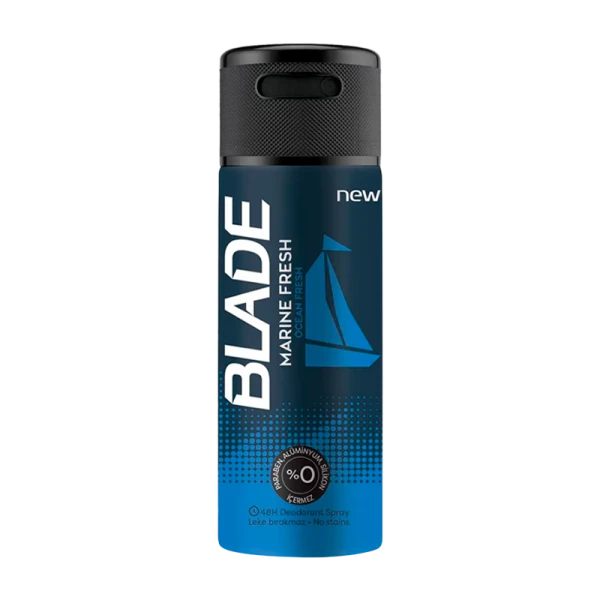 Мужской дезодорант-спрей BLADE Marine Fresh с ароматом цитрусовых, лимона,иланг-иланга, кедра и гибискуса - с мягким, но характерным запахом, сохраняющий действие на протяжении 48 часов.
