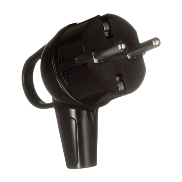 Вилка электрическая Makel С/З 16A IP20 угловая с кольцом черный 10038 (1/100)