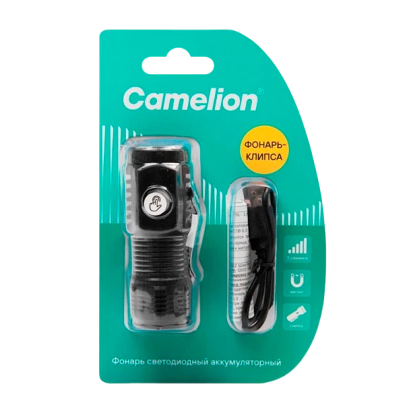 Фонарь Camelion светодиодный аккумуляторный миниатюрный с 3 светодиодами, 5 режимами освещения, магнитом и пружинной клипсой.