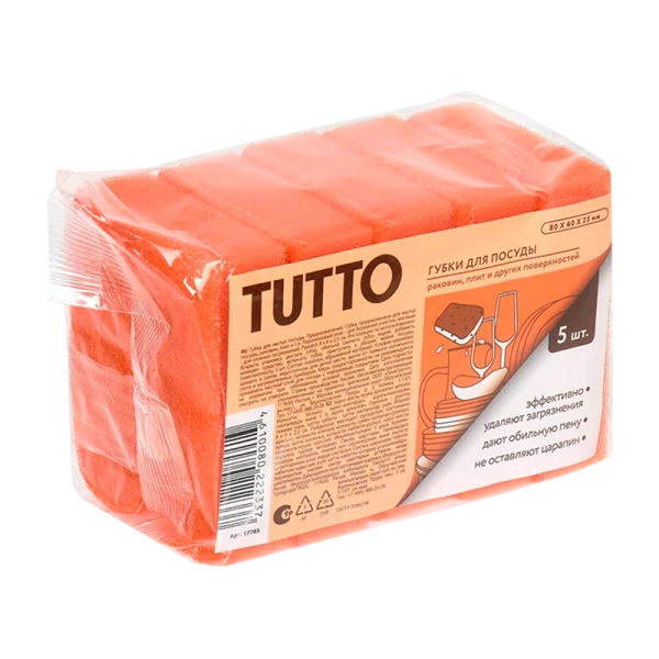Губки для посуды TUTTO 8х6х2.5см 5шт. оранжевые.