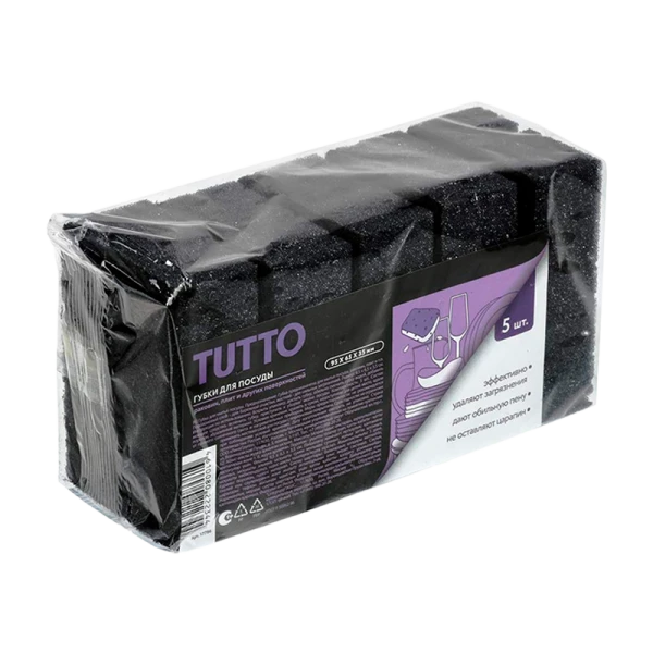 Губка для посуды TUTTO 9.5х6.5см 5шт. черный (1/40)