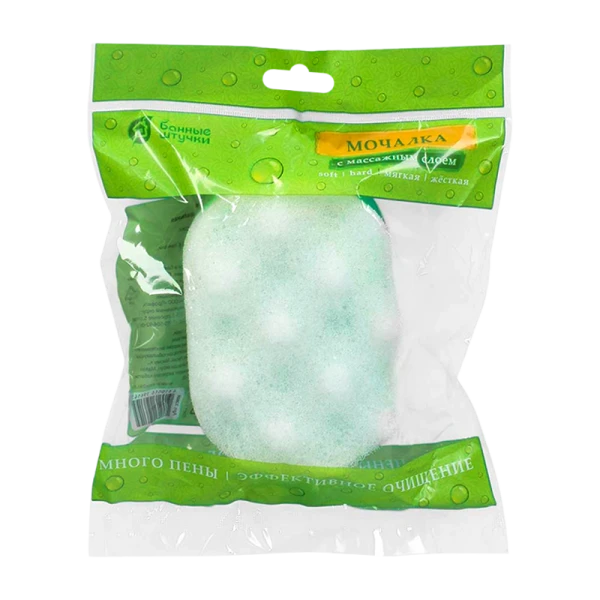 Мочалка массажная Банные штучки овальная 14см x 9.5см поролон зеленый белый (1/30)
