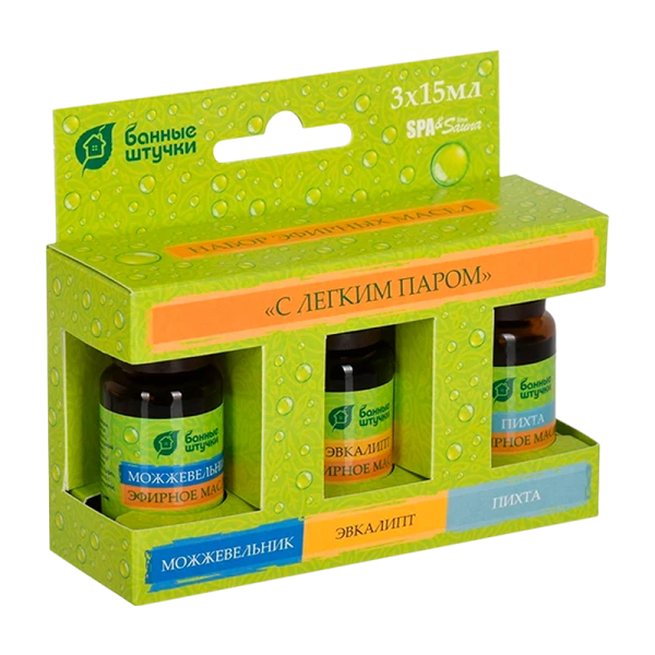 Набор эфирных масел Банные штучки «С лёгким паром», состоящий из трёх масел, поможет вам расслабиться и насладиться отдыхом в бане или сауне. Каждое масло обладает своими уникальными свойствами, которые помогут вам получить максимальную пользу от процедуры.