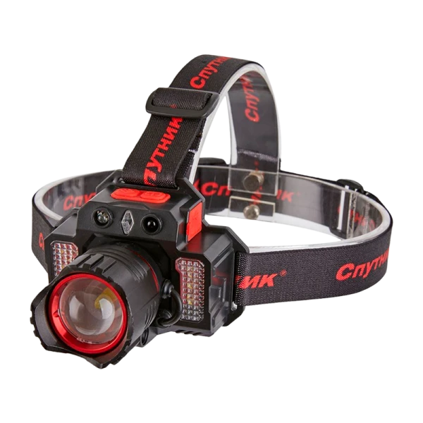 Фонарь налобный Спутник ASL663 5W LED от аккумулятора 5 режимов черный красный (1/20)