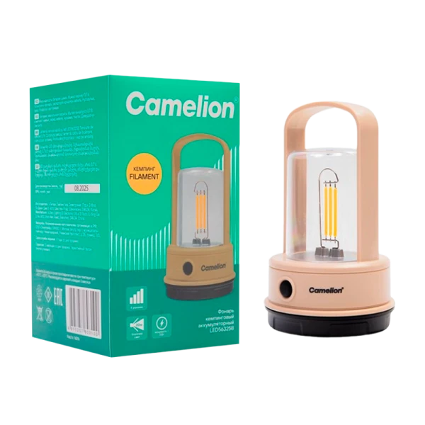 Фонарь туристический Camelion LED56325B от аккумулятора Type-C 4 режима бежевый (1/6/24)