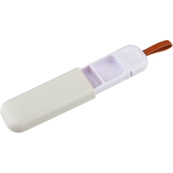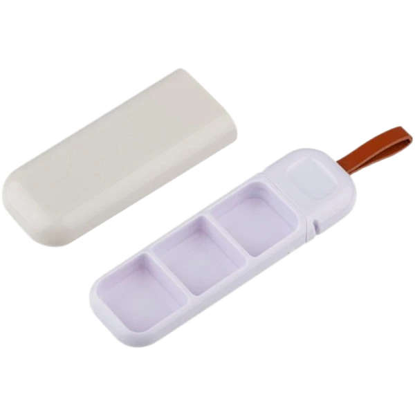 Выдвижная таблетница ECOS с тремя секциями — это компактный и удобный органайзер для ежедневных лекарств или витаминов. Её умная конструкция позволяет легко открывать каждую секцию по отдельности, защищая содержимое от смешивания и высыпания. Вы можете распределить таблетки, например, на утро, день и вечер, чтобы не пропустить важный приём. Небольшой размер и лёгкость делают её идеальным спутником в сумочке или кармане. Таблетница изготовлена из прочного пластика, который долго служит и не занимает много места.