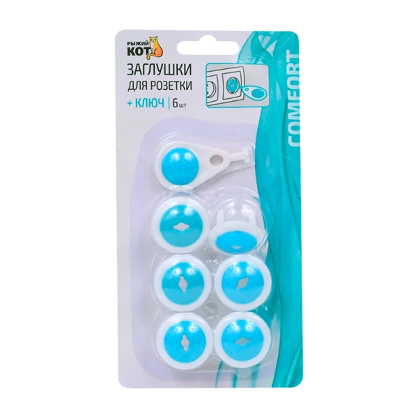 Заглушки для розеток Рыжий Кот, 6 штук - незаменимая вещь для обеспечения безопасного пространства в доме. Они полностью закрывают отверстия электрических розеток, препятствуя контакту малыша с их токопроводящими элементами. Заглушки легко устанавливаются и снимаются при помощи ключа.