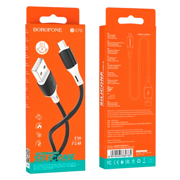 Дата-кабель Borofone BX79 силиконовый, длиной 1 метр поддерживает нагрузку до 2.4 А, а также одновременную зарядку и передачу данных. Силиконовое покрытие обеспечивает прочность, кабель трудно повредить при многократном сгибании. Кабель черного цвета.
