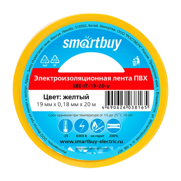 Изолента Smartbuy 19мм*20м ПВХ желтый