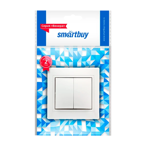 Выключатель Smartbuy "Венера" 2-клавишный 10А белого цвета.