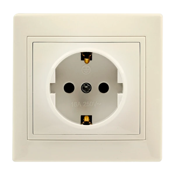 Эта модель имеет бежевый цвет корпуса и подходит для скрытой установки. Максимальная допустимая нагрузка по току составляет 16А.